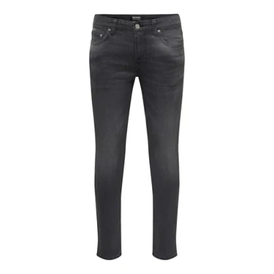 ONLY & SONS Men's Onswarp Skinny Destroy PIM DNM, Washed Black, 32 W/32 L