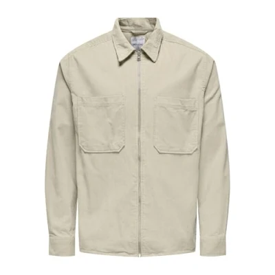 ONLY & SONS Men's Onsalp 14w RLX 2pkt Washd Cord Ls Zip Long Sleeve Shirt, Silver Lining, M