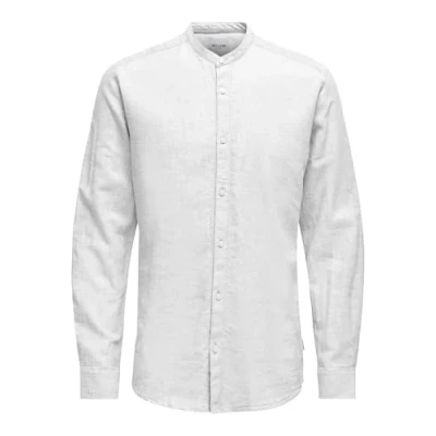 ONLY & SONS Mens Onscaiden Ls Solid Linen Mao Noos Shirt, White, XL UK