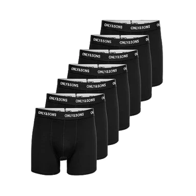 ONLY & SONS Men's Onsfitz Noos Solid Trunks, Pack of 7 Boxer Shorts, Black/Detail:Black Waist White Logo, L