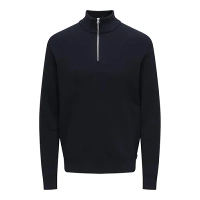 ONLY & SONS Men's Onsphil Reg 12 Cotton Half Zip Knit Noos Sweater, Dark Navy, S