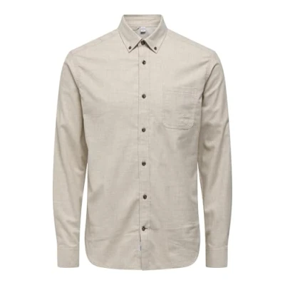 Only & Sons Normal Geschnitten Kragen Shirt, Men's, Size: Small, Silver lining