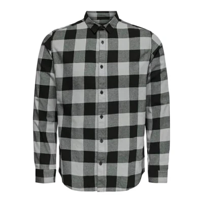 Only & Sons NOS Men's Onsgudmund Ls Checked Shirt Noos Casual Shirt, Grey (Griffin Griffin), XX Large