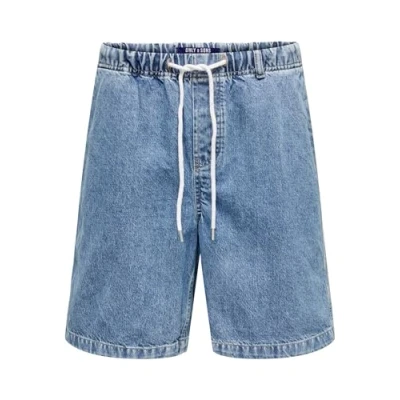 Only & Sons Onsfade Strings denim shorts, Men's, Size: Small, Medium blue