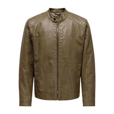 Only & Sons Onsmike Racer Jacket Faux leather jacket, Men's, Size: Small, Monks robe
