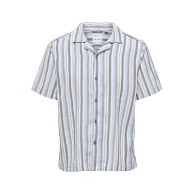 ONLY & SONS Onstrev Life Reg Struc Stripe SS Shirt, Vintage Indigo, XXL