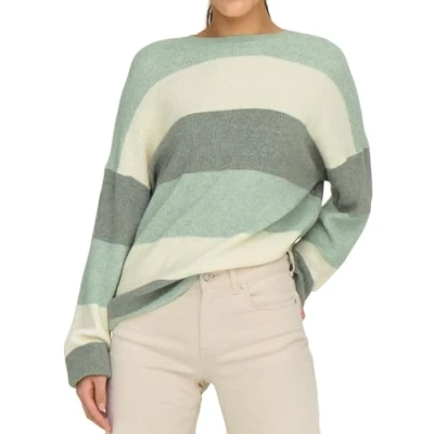 ONLY Women Knit Sweater Round Neck Long Sleeve Deep Set Shoulder Ribbed Cuffs, Colours:Green, Size:S