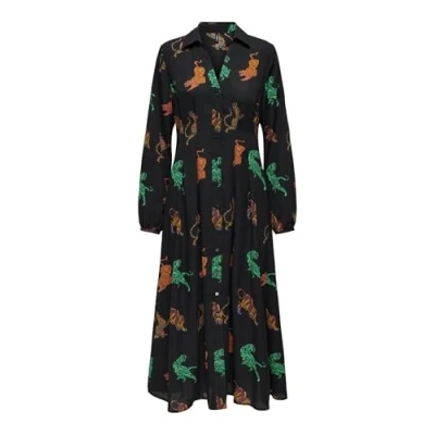 ONLY Women's Onlalma Life Poly Kiara Shirt Dress, Black/AOP: 586 Swirl Tiger, S