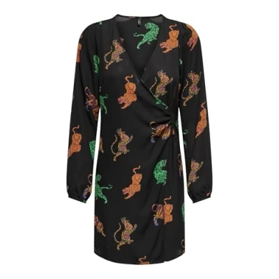 ONLY Women's Onlalma Life Poly L/S Gina Dress, Black/AOP: 586 Swirl Tiger, XL