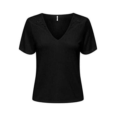 ONLY Women's Onlanja S/S Lace Top JRS T Shirt, Black, S