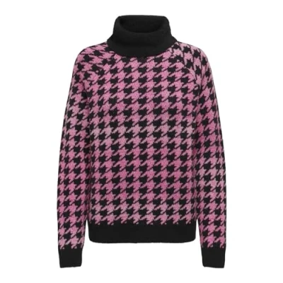 ONLY Women's Onlberta Ls Jq Rollneck KNT Knitted Jumper, Black/Pattern:Fushsia Purple/Azelea Pink, S