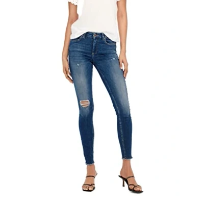 ONLY Women's ONLBLUSH MID SK AK RW DT DNM REA221 NOOS Jeans, Dark Medium Blue Denim, S/30