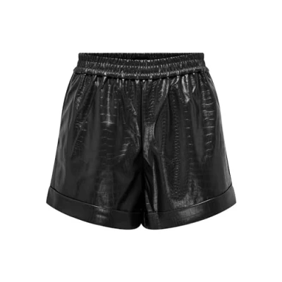 ONLY Women's Onlditte Croco Faux Leather Shorts CC OTW, Black, L
