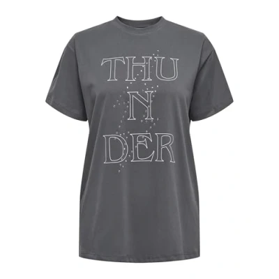 ONLY Women's Onldolla Life S/S Studs Top Box JRS T Shirt, Magnet/Print: Thunder, S