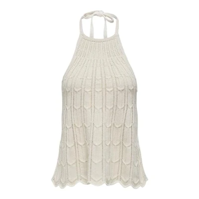 Sweaters for women from the Danish brand ONLY Casual and easy to wear all day long Textured knit Product type: knit top Neck: halter neck Sleeve length: sleeveless Closing : Tie string fastening Extra details: Scallop edge, Pointelle detail