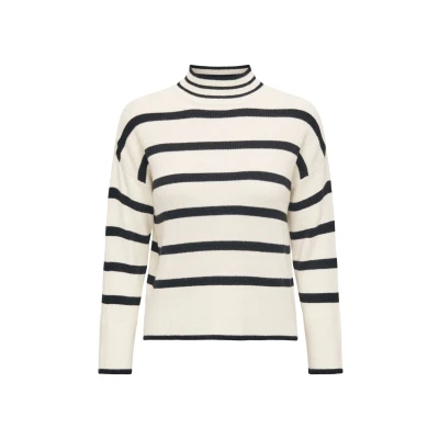 ONLY Women's Onlibi L/S Higneck Pullover CC KNT Sweater, Whitecap Grey/Stripes: White/Melange/Black, M