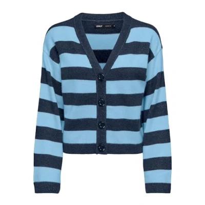 ONLY Women's Onlkatia LS V Neck Cardi CC KNT Cardigan Sweater, Dress Blues/Stripes: Melange/Clear Sky, M