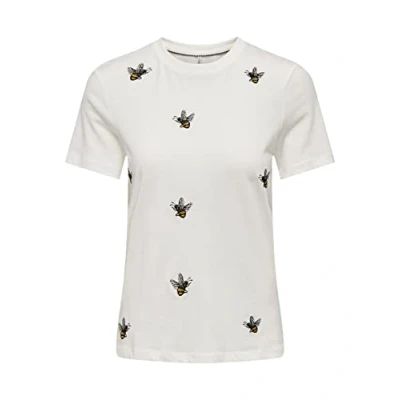 ONLY Women's Onlkita Reg S/S Top Box Cs JRS T Shirt, Cloud Dancer/Print:Bees, XS