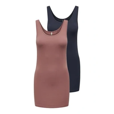 ONLY Women's Onllive Love New Long Tt 2 Pack Noos Tank Top, Night Sky/Pack: Sky/Withered Rose, S