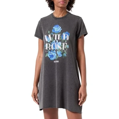 ONLY Women's Onllucinda S/S Roses Dress Box Ub SWT Shirt, Black, S