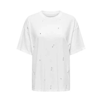 ONLY Women's ONLLUCY Life S/S Bling TOP Box JRS T Shirt, Bright White/Detail:Rhinestones,
