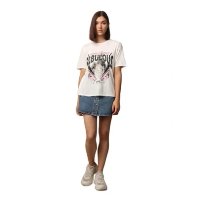 ONLY Women's Onllulu Life Boxy S/S Wild Top Box JRS T Shirt, Cloud Dancer/Print:Fabulous, M