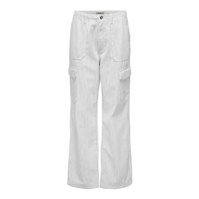 ONLY Women's Onlmalfy Inez Hw Cargo PNT Noos Trousers, Cloud Dancer/Stripes: Blue, M / 32L