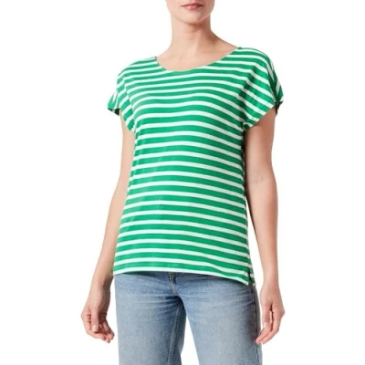 ONLY Women's Onlmay Life S/S Open Back Top Box JRS T Shirt, Green Bee/Stripes: Cloud Dancer (Dina), Large