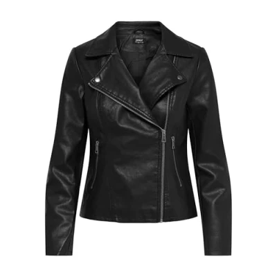 ONLY Women's Onlnewmelisa Faux Leather Biker CC OTW Jacket, Schwarz, S