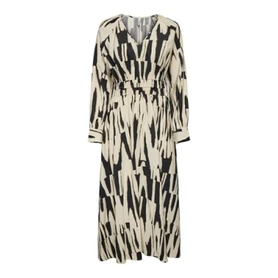 ONLY Women's Onlmila Life L/S V Neck midi Dress Ptm, Black/AOP: Cherie Graphic, L