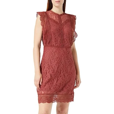 ONLY Women's Onlnew Karo Sl Lace Above Knee Dresswvn Mini Dress, Apple Butter, XS