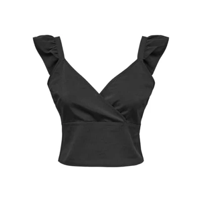 ONLY Women's Onlnova Life Elite Frill Venus Top Solid, Black, L