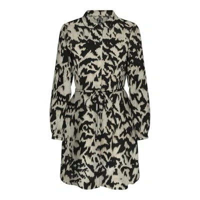 Only, Short dress, teenager, normal cut, belt at the waist, all-over print, shirt collar, long sleeves