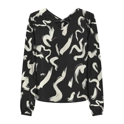 ONLY Women's Onlnova Life Vis L/S Mallory Top Blouse, Black/AOP: 587 Yoko, S