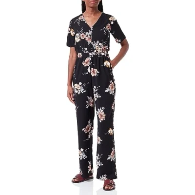 ONLY Women's Onlnova Lux S/S Alicia Jumpsuit, Black/AOP: Romantic Flower, M