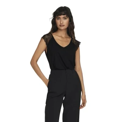 ONLY Women's Onlpetra S/S Lace Mix Top Cs JRS T Shirt, Black, S