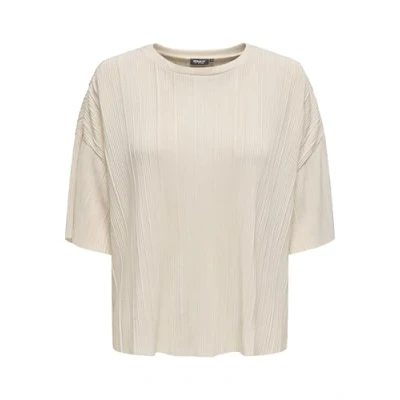 ONLY Women's Onlravenna S/S Plisse Noos JRS Feminine top with O Neck and Short Sleeves, Regular fit, Bone White, L