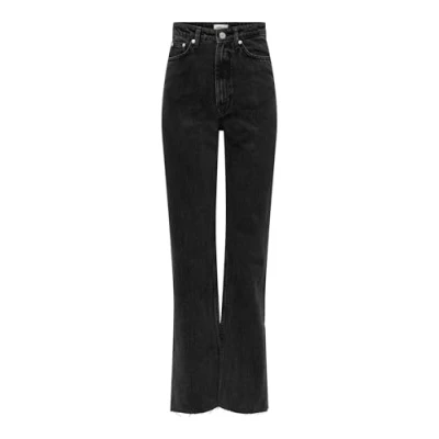 ONLY Women's Onlriley Ex Hw Straight DNM Dot258 Noos Jeans, Washed Black, 28W x 30L
