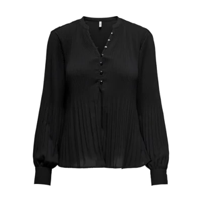 ONLY Women's Onlronja Life L/S V Neck Pleated top Ptm Blouse, Black, XS