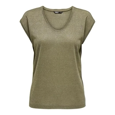 ONLY Women's Onlsilvery S/S V Neck Top JRS Noos T Shirt, Falcon/Detail: Tone in Lurex, M