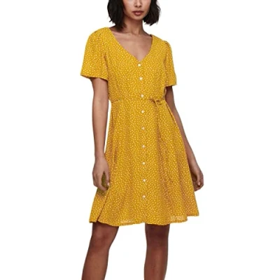 ONLY Women's Onlsonja Life S/S Dress Noos Wvn Dress, Chai Tea /AOP:dot W Macadamia, 8