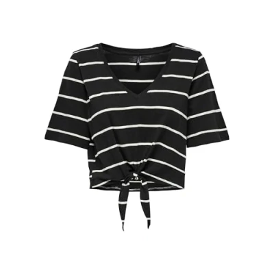 Onlsummer S/S V Neck Knot Top JRS, Black, XS
