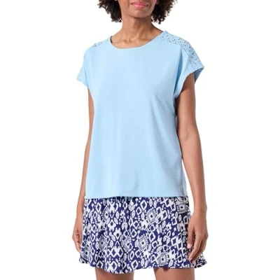 ONLY Women's Onlthea Life S/S Lace Mix Top JRS T Shirt, Clear Sky, S