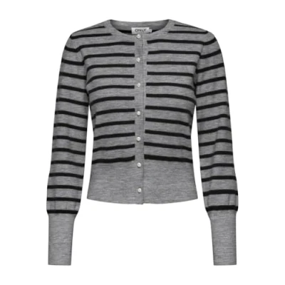 ONLY Women's Onlvalley LS Pearl O Neck Cardigan KNT Sweater, Medium Grey Melange/Stripes: Black, M