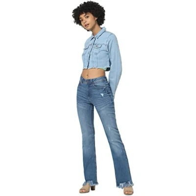 ONLY Women's Cropped Denim Jacket Long Sleeve Vintage Stretch Short Transition ONLWONDERful, Colours:Blue, Size:S