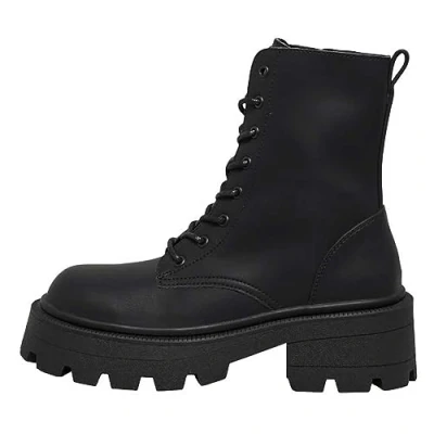ONLY Women's Onlbanyu 3 PU Monochrome Lace Boot Noos Ankle, Black, 4 UK