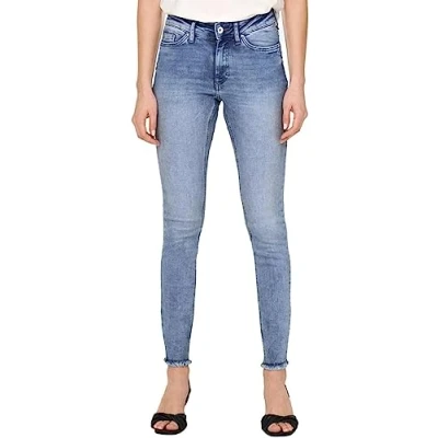 ONLY Women's ONLBLUSH MID SK ANK RAW DNM REA694 NOOS Jeans, Medium Blue Denim, M / 32L