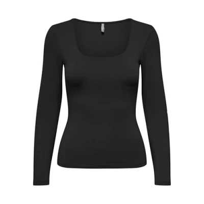 ONLY Women's Onlea L/S Deep Neck Top JRS Longsleeve T Shirt, Black, Large