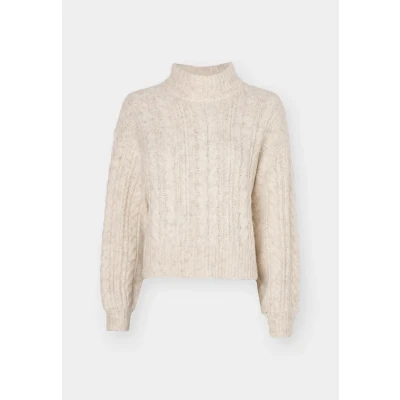 ONLY Women's Onlida Life Ls High Neck KNT Sweater, Birch/Detail: Melange, M