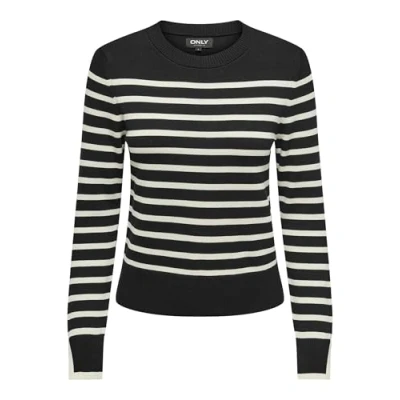 ONLY Women's Onlkalana LS O Neck KNT Sweater, Black/Stripes: White Cap Grey, XS